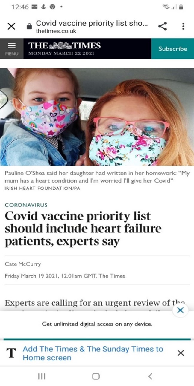 2021 – NATIONAL HEART FAILURE VACCINE PRIORITISATION CAMPAIGN (IRELAND)